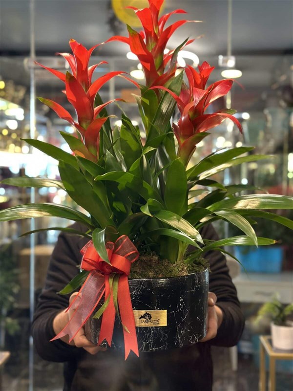 Guzmania, Tillandsioideae alt familyası Bromeliaceae botanik ailesindeki 120'den fazla çiçekli bitki türünün bir cinsidir. Esas olarak Florida, Batı Hint Adaları, güney Meksika, Orta Amerika ve kuzey ve batı Güney Amerika'ya özgü sapsız, yaprak dökmeyen, epifitik çok yıllık bitkilerdir.Ürün boyu 85 cm.Ürün hacmi büyütülebilir veya küçültülebilir.(Özel isteğe göre daha küçük veya büyük ölçülerde whatsapp üzerinden talep ediniz)Özel siparişlerinizi bütçenize göre belirtebilirsiniz.Altındaki vazo isteğe göre değişebilir. Oda ve ofis konseptine göre renk veya farklı modeller istenebilir.Whatsapp üzerinden fotoğraf isteyebilir , bilgi alabilirsiniz.