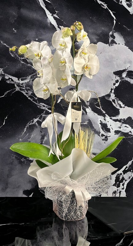 Zamansız Zarafet: Birinci Kalite Orkide Sanatı"**Sarı Frezya Çiçekçilik olarak, orkide severlerin kalbini fethedecek muhteşem bir eseri sizlere sunmanın heyecanını yaşıyoruz. İki dal seramik vazo içerisinde yer alan bu birinci kalite orkide, sadece bir çiçek değil, zamanın zarafetini yansıtan bir sanat eseridir.**Orkidenin Tarihçesi:**Orkide, binlerce yıllık bir geçmişe sahip olan egzotik ve gizemli bir çiçektir. Eski Çin ve Japon kültürlerinde kutsal olarak kabul edilmiş, Eski Yunan'da güzellik ve lüks sembolü olmuştur. Zaman içinde birçok medeniyetin mitolojilerinde ve kültürlerinde önemli bir rol oynamış olan orkide, doğanın büyüsünü yansıtır.**Orkidemizin Zarafeti:**İki dal seramik vazo içerisindeki birinci kalite orkidemiz, orkidelerin asaletini ve zarafetini en saf haliyle taşıyor. Her bir çiçek, özenle seçilmiş ve uzun ömürlü bir güzellik sunuyor.**Özenle Hazırlanmış Ambalaj:**Bu eşsiz orkide, özel bir şekilde hazırlanmış ambalaj içinde sizlere ulaşıyor. Her detay düşünülerek yapılan ambalaj, orkidemizin özel günlerinizi ve özel anlarınızı taçlandırmasını sağlıyor.**Bereket Anlamı Taşıyan Başaklar:**Orkidemiz, bereketin ve bolluğun simgesi olan başaklarla süslenmiştir. Bu detay, çiçeğin sadece estetik bir güzellik değil, aynı zamanda içsel bir anlam taşıdığını vurgular.İki dal seramik vazo içerisindeki birinci kalite orkidemiz, geçmişten günümüze taşıdığı tarihi anlamı ve modern zarafetiyle sizleri büyüleyecek. Eğer siz de evinizi, ofisinizi veya özel alanlarınızı bu eşsiz çiçekle süslemek ve doğanın büyüsünü yaşamak istiyorsanız, bu orkide tam aradığınız şey.Bu orkide, sadece bir çiçek değil, tarih, estetik ve anlamın buluştuğu bir sanat eseridir. Kendinize veya sevdiklerinize bu eşsiz deneyimi yaşatmak için hemen sipariş verebilirsiniz.