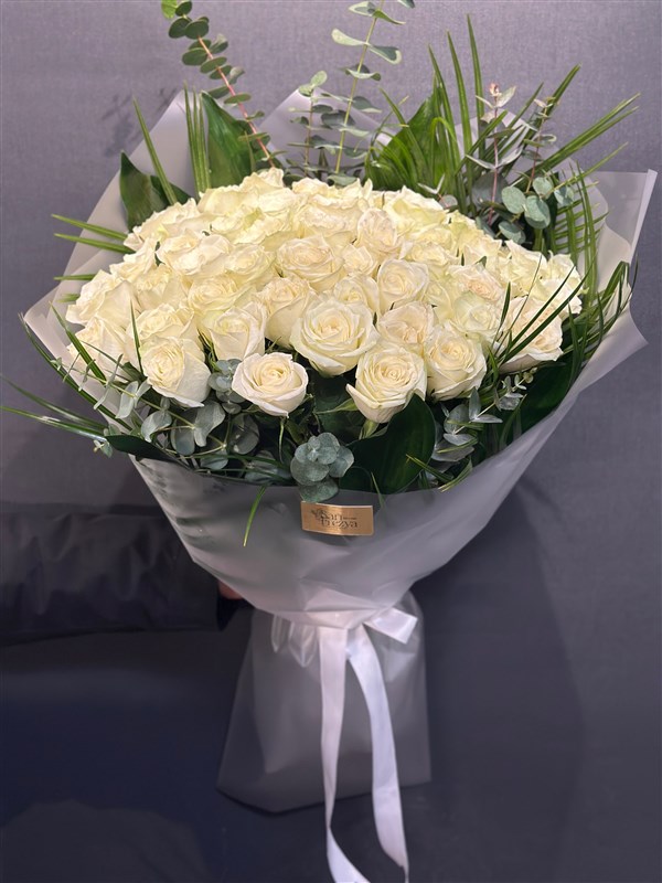 Bu anlam dolu hikayeyi en özel haliyle yaşatmak için 51 adet birinci kalite, 60 cm uzunluğundaki beyaz güller, okaliptüs ve asperisya fenix yapraklarıyla süslenerek titizlikle hazırlandı. Özel ambalajıyla zarif bir dokunuş kazanan bu şık buket, doğallığı ve lüksü bir arada sunuyor.