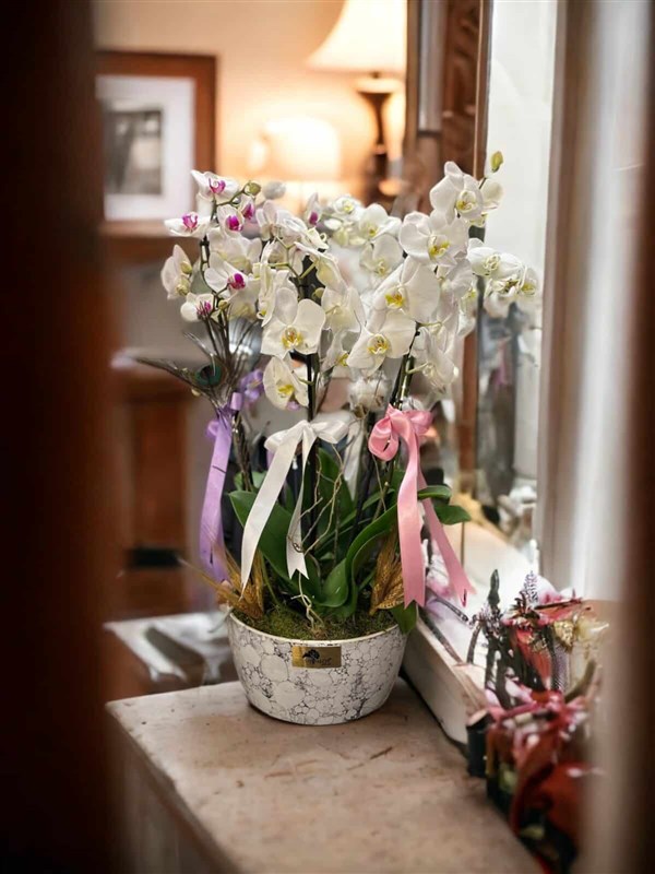 Özel tasarım porselen içerisinde kuru çiçeklerle pampasla süslenmiş orkideler. Ev hediyesi ve ofis hediyesi için kalıcı bir hediyedir. Altındaki vazo el yapımıdır. Ürün boyu 80 cm. Ürün hacmi büyütülebilir veya küçültülebilir. Özel siparişlerinizi bütçenize göre belirtebilirsiniz. Altındaki vazo isteğe göre değişebilir. Whatsapp üzerinden fotoğraf isteyebilir , bilgi alabilirsiniz.