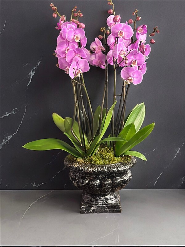 Muhteşem bir görünüm sunan grand deluxe vazo içerisinde, 8 dalıyla göz alıcı pembe Hollanda orkideleri bulunmaktadır. Her biri özenle seçilmiş ve işlenmiş olan bu orkideler, zarafetin ve lüksün simgesi olarak bilinir.