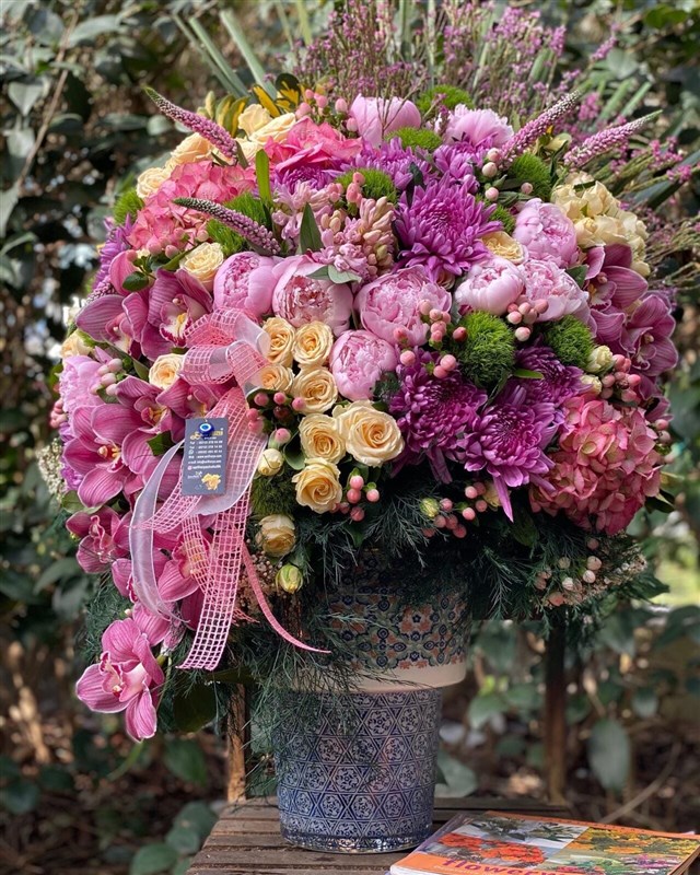 Tamamen ithal kesme çiçeklerle hazırlanmış,İçerisinde cymbidium , şakayıkların, ithal güllerin , veronicalar , ortancaların ,anastasiaların yer aldığı mevsim yeşillikleri ile hazırlanmış aranjmanımız .Fiyat vazo hariçtir. İster kendi vazonuza , isterseniz mağazamızdan seçtiğiniz vazoyla hazırlanabilir.Çiçekler mevsimsel olarak değişkenlik gösterebilir.