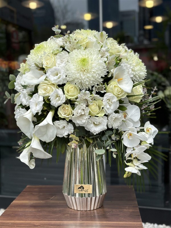 İçerisinde Anastasia , güller lisyantuslar galalar orkideler mevsim çiçekleriyle hazırlanmış gümüş özel vazo içerisinde ki şık aranjmanımız.Gittiği yerde kendini hayran bırakır.Ürün boyu 80 cm.Ürün hacmi büyütülebilir veya küçültülebilir.Özel siparişlerinizi bütçenize göre belirtebilirsiniz.Altındaki vazo isteğe göre değişebilir.Whatsapp üzerinden fotoğraf isteyebilir , bilgi alabilirsiniz.