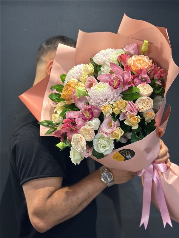 İçerisinde Anastasia , pembe güller ve mevsim çiçekleriyle hazırlanmış şık buketimiz.Gittiği yerde kendini hayran bırakır.Ürün boyu 50 cm.Ürün hacmi büyütülebilir veya küçültülebilir.Özel siparişlerinizi bütçenize göre belirtebilirsiniz. Whatsapp üzerinden fotoğraf isteyebilir , bilgi alabilirsiniz.