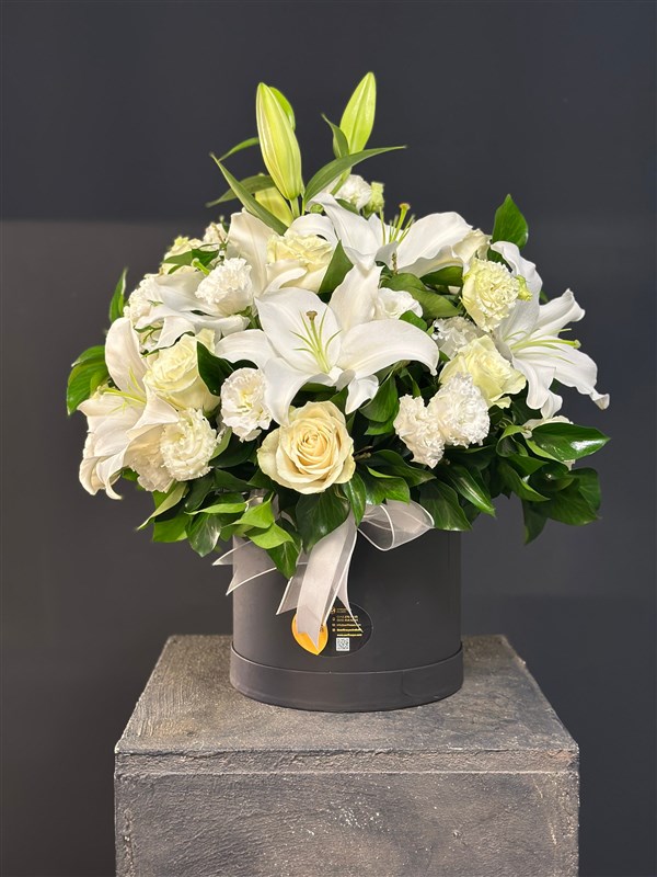 İçerisinde lilyumlar lisyantuslar , beyaz güller ve mevsim çiçekleriyle hazırlanmış kutu içerisinde ki şık aranjmanımız.Gittiği yerde kendini hayran bırakır.Ürün boyu 45 cm.Ürün hacmi büyütülebilir veya küçültülebilir.Özel siparişlerinizi bütçenize göre belirtebilirsiniz.Altındaki obje isteğe göre değişebilir.Whatsapp üzerinden fotoğraf isteyebilir , bilgi alabilirsiniz.