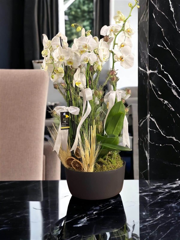 Birinci sınıf 6 dal Hollanda orkideleri ile hazırlanmış özel siyah cam vazodaki çok şık orkidelerimiz.Altında ki vazo isteğe göre değiştirilebilir .Ürün içerisinde kullanılan süsleme çiçekleri mevsimsel olarak değişiklik gösterebilir.Detaylı bilgi için WhatsApp üzerinden iletişime geçiniz.