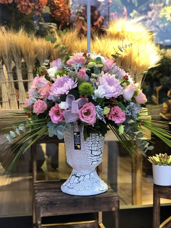 Pembe tonlarda lisyantus anastasia güllerle hazırlanmış aranjmanımız.Vazo isteğe ve zaruriyete göre değişebilir.