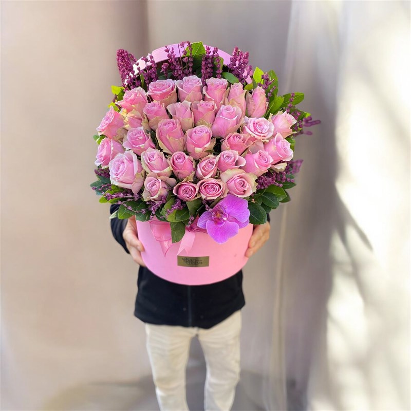 İçerisinde , pembe güller orkide ve mevsim çiçekleriyle hazırlanmış kutu içerisinde ki şık aranjmanımız.Gittiği yerde kendini hayran bırakır.Ürün boyu 45 cm.Ürün hacmi büyütülebilir veya küçültülebilir.Özel siparişlerinizi bütçenize göre belirtebilirsiniz.Altındaki vazo isteğe göre değişebilir.Whatsapp üzerinden fotoğraf isteyebilir , bilgi alabilirsiniz.