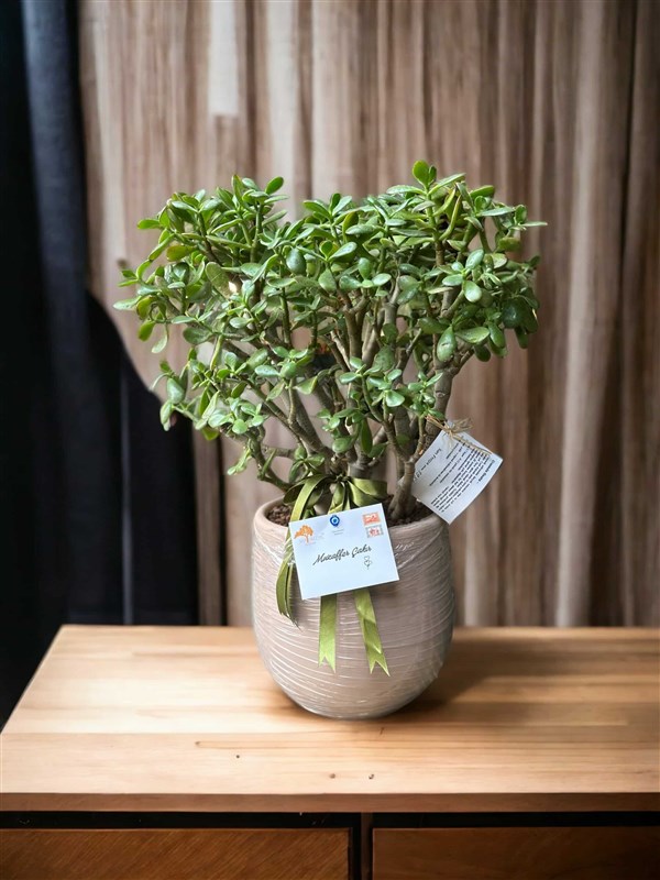 🌿 Yaşamın Yeşil Hazinesi: Crassula Ovata XL Özel Saksıda 🌱Bir zamanlar, çorak toprakların sıcak kucaklarına düşen bir tohum vardı. Toprakla dans ederek kök saldı, güneşin sevgisiyle büyüdü ve Crassula Ovata adını kazandı. Bu hikaye, sıradan toprakta yeşeren bir bitkinin nasıl zamanla büyük bir hazineye dönüştüğünü anlatıyor.🌱 Hikayesi: Crassula Ovata, zaman içinde inanılmaz bir yolculuk geçirdi. Ufak yapraklar, topraktan beslenerek büyüdü ve XL boyutlara ulaştı. Her bir yaprak, yaşamın dayanıklılığını ve direncini simgeliyor. Gökyüzünün mavisiyle, toprağın sıcaklığıyla büyüdü ve güzellikle yeşerdi.💰 Zenginliğin Sembolü: Rivayete göre Crassula Ovata, çiçek açtığında yetiştiricisine zenginlik getirir. Bu inanış, bitkinin adına "Para Ağacı" olarak da yansımıştır. Belki de bu bitkinin büyüsüyle, yaşamınızdaki zenginlikleri daha da çoğaltabilirsiniz.🪴 Özel Saksısında Büyüyor: Crassula Ovata XL, özel olarak tasarlanmış saksısında yetişiyor. Bu saksı, bitkinin doğallığını ve güzelliğini koruyarak onu en iyi şekilde sergiliyor. Sadece bir bitki değil, aynı zamanda yaşamın döngüsünü de taşıyan bir sembol.🌿 Bakımın Sırrı: Crassula Ovata, minimal bakım ile büyüleyici bir canlılığa sahip olabilir. Haftalık sulama ve güneş ışığına maruz bırakma, bu bitkinin en güzel halini sergilemesini sağlar. Onunla geçirdiğiniz her an, doğanın mucizesini size hatırlatacaktır. 🌱 Yaşamın Mucizesi:Crassula Ovata XL, yaşamın sevgiyle yeşeren bir hikayesini evinize taşıyor. Özel saksısında büyüdü, doğanın enerjisiyle şekillendi ve size estetik bir armağan sunuyor. Hem görsel bir şölen hem de potansiyel bir sembol olarak sizinle.
