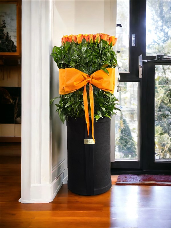 🌟 Eşsiz Güzellik: Siyah dev kutuda 50 adet birinci kalite özenle seçilmiş turuncu renkteki Hollanda gülleriyle hazırlanan bu dev kutu gül aranjmanı, zarifliği ve göz alıcı turuncu rengiyle dikkat çekiyor. Her bir gül, özenle seçilerek bu özel aranjmanda yerini alıyor.🧡 Turuncunun Sıcaklığı: Turuncu renk, canlılığı, neşeyi ve sıcaklığı temsil eder. Bu aranjmanda kullanılan turuncu Hollanda gülleri, sevgi ve coşkunun mükemmel bir göstergesi olarak öne çıkıyor.🎁 Büyüleyici Sunum: Dev boyutuyla dikkat çeken bu siyah kutulu gül aranjmanı, gold etiket ve turuncu papyon detaylarıyla daha da şık bir görünüme kavuşuyor. Boyu 115 cm olan bu aranjman, özel günlerinize büyüleyici bir dokunuş getirecek.🌹 Kalitede Zirve: Birinci kalite özenle seçilmiş Hollanda gülleri, bu aranjmanın en önemli özelliği. Her bir gül, özenle işlenerek seçilmiş ve harika bir uyum içerisinde yerleştirilmiş.Bu siyah dev kutuda 115 cm boyundaki bu muhteşem aranjman, özel günlerinizin vazgeçilmezi olacak. Sevdiklerinizi mutlu etmek için mükemmel bir seçenek veya evinizi süsleyecek büyüleyici bir dekorasyon parçası.