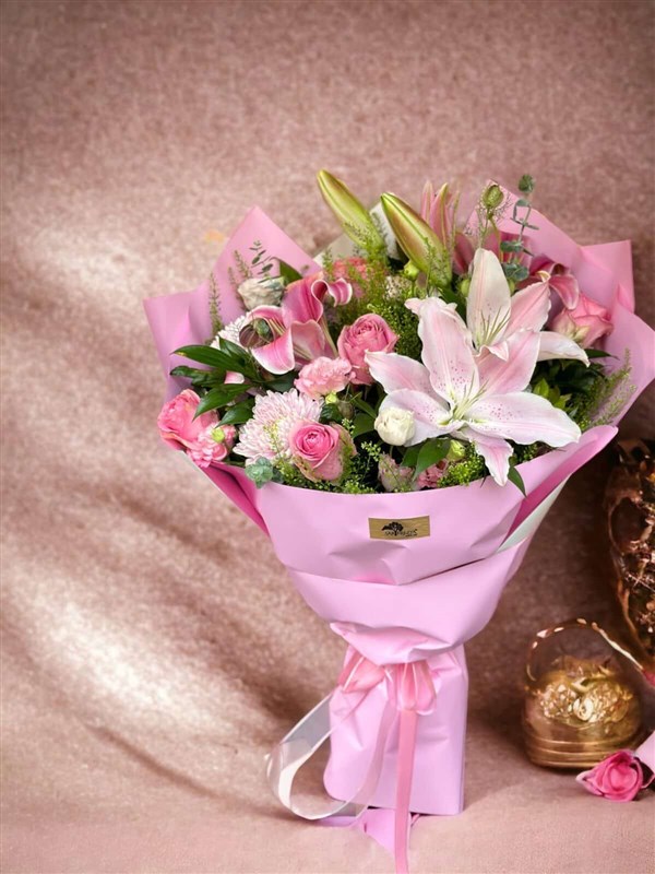 İçerisinde pembe lilyum , pembe güller anastasia ve mevsim çiçekleriyle hazırlanmış şık buketimizGittiği yerde kendini hayran bırakır.Ürün boyu 60 cm.Ürün hacmi büyütülebilir veya küçültülebilir.Özel siparişlerinizi bütçenize göre belirtebilirsiniz. Whatsapp üzerinden fotoğraf isteyebilir , bilgi alabilirsiniz.
