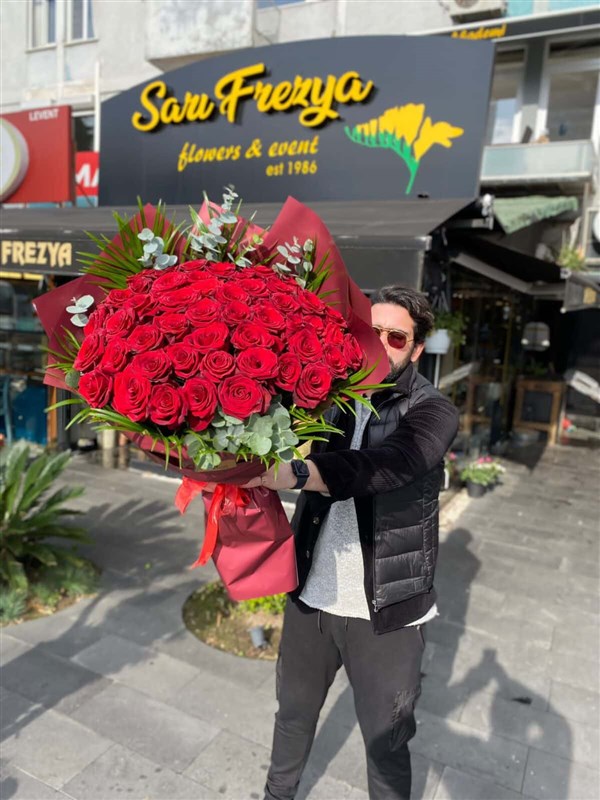 41 ithal kırmızı gülle hazırlanmış buketimiz .
