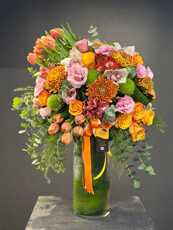 Enerjisiyle güneşi, renkleriyle çiçeklerin dansını hatırlatan bu özel aranjman; mutluluk, aşk ve zarafeti aynı anda yaşatıyor.
