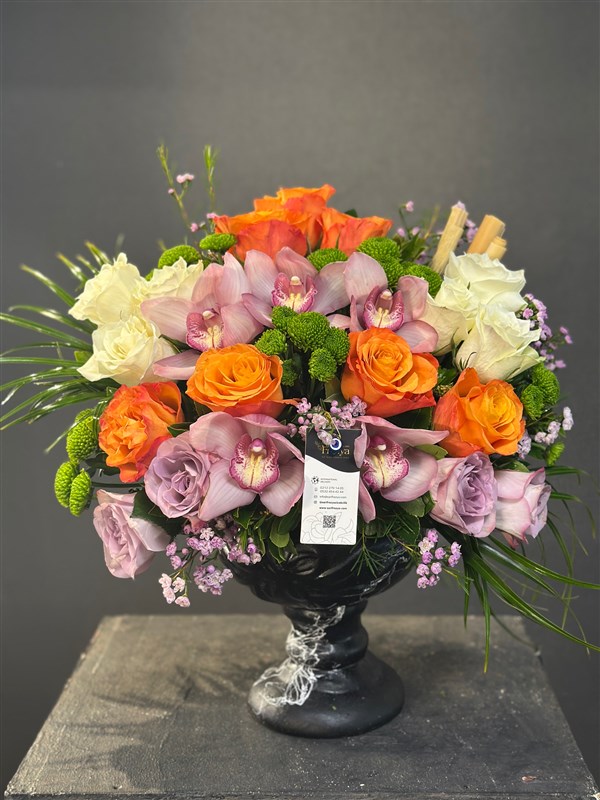 Birbirinden taze ithal güller,cymbidiumlar ve mevsim çiçekleriyle hazırlanmış aranjmanımız.Vazo ve çiçekler isteğe ve zaruriyete göre değişkenlik gösterebilir.