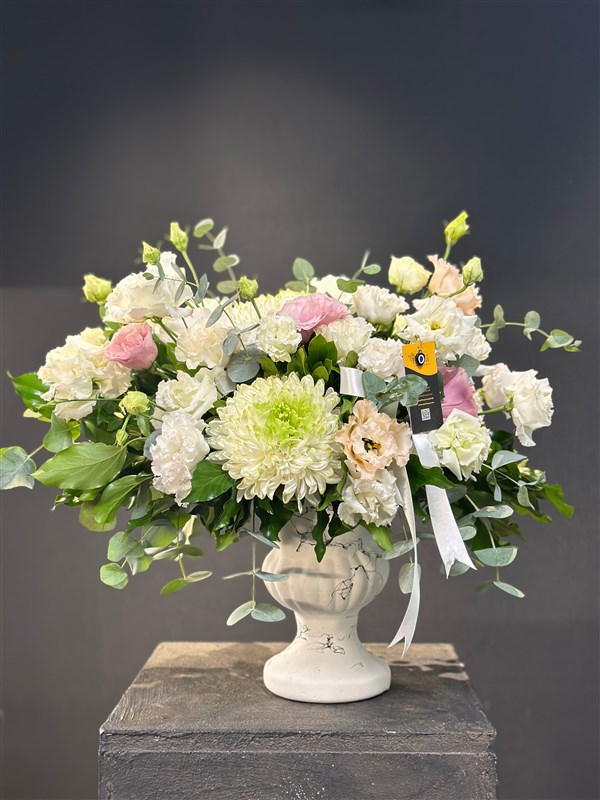 İçerisinde anastasialar, güller ve mevsim çiçekleriyle hazırlanmış seramik vazo içerisinde ki şık aranjmanımız.Gittiği yerde kendini hayran bırakır.Ürün boyu 45 cm.Ürün hacmi büyütülebilir veya küçültülebilir.Özel siparişlerinizi bütçenize göre belirtebilirsiniz.Altındaki vazo isteğe göre değişebilir.Whatsapp üzerinden fotoğraf isteyebilir , bilgi alabilirsiniz.