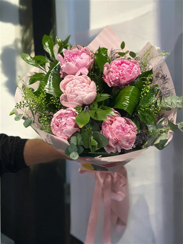 “Her anınıza zarafet katan, göz alıcı bir tasarım… 5 pembe şakayığın muhteşem dokunuşuyla hazırlanan bu buket, doğanın en güzel renklerini bir araya getiriyor. Eucalyptus, aspridya ,traspi ve limonyumun taptaze yeşillikleriyle zenginleştirilen bu benzersiz aranjman, estetik ambalajıyla şıklığı zirveye taşıyor. Her detayında özenle işlenmiş olan bu buket, sadece bir çiçek değil, duygularınızı ifade etmenin en etkileyici yolu. Sevdiklerinizi büyüleyecek bu zarif tasarım, unutulmaz anlar yaratmak için hazır. Göz kamaştırıcı, doğal ve sofistike… Bir bakışta aşık olacaksınız!”