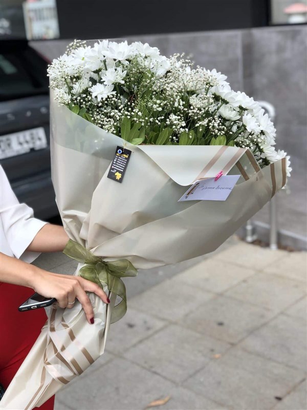 Güzel ithal krizantemlerle hazırlanmış papatya buketimiz.