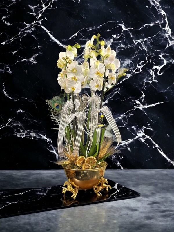 Birinci sınıf 4 dal Hollanda orkideleri ile hazırlanmış özel pegasus vazodaki çok şık aranjmanımız.