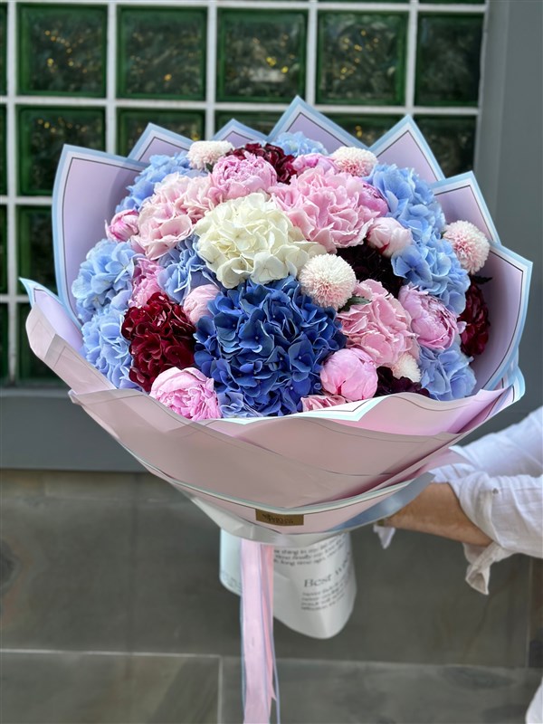 “10 adet zarif şakayık, mavi ve pembe dev ithal ortancaların ihtişamıyla buluşuyor. VIP top anastasiaların göz alıcı güzelliğiyle tamamlanan bu dev buket, büyüklüğü ve ihtişamı ile hayranlık uyandırıyor. Her çiçeği özenle seçilen bu aranjman, unutulmaz anlar yaratmak ve duyguları en şık şekilde ifade etmek için tasarlandı. Sevdiklerinize verebileceğiniz en özel ve lüks hediye ile fark yaratın.”