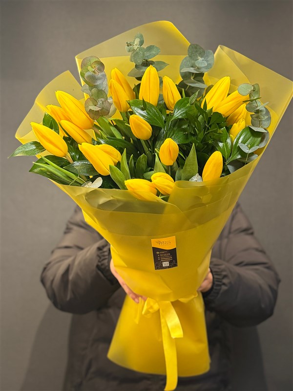 Sarı lalenin simgelediği umut, yeni başlangıçlar ve içten mutluluk, bu buketi hem zarif hem de iç açıcı bir hediye alternatifi haline getirir. Minimal dokunuşlarla hazırlanan tasarım, sadeliği sevenler için ideal bir şıklıktır.