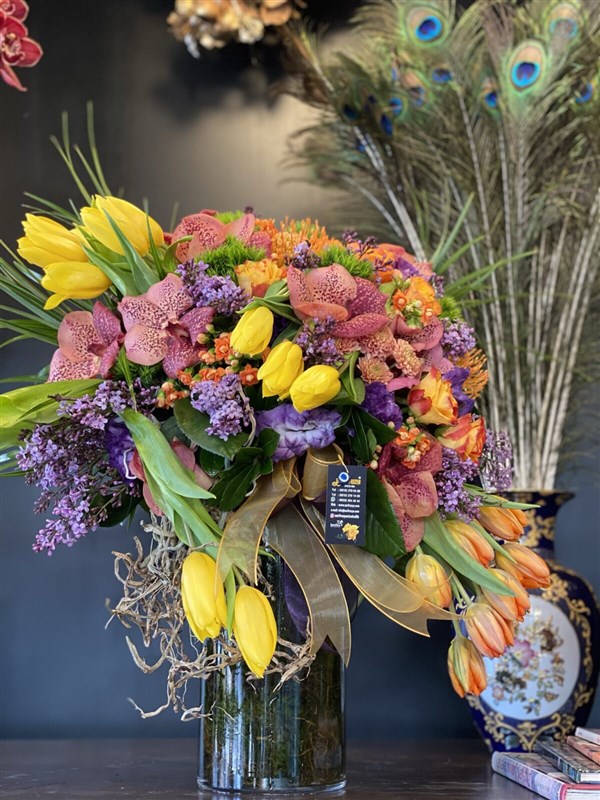 Vanda orkideler ,laleler ,güller , mevsim çiçekleri ve mevsim yeşillikleriyle hazırlanmış , cam vazo içerisinde suda yüzen yosun parçacıklarının kattığı otantik görüntüsüyle ödüllü aranjmanımız.Vazo ve mevsim çiçekleri isteğe ve zaruriyete göre değişebilir.